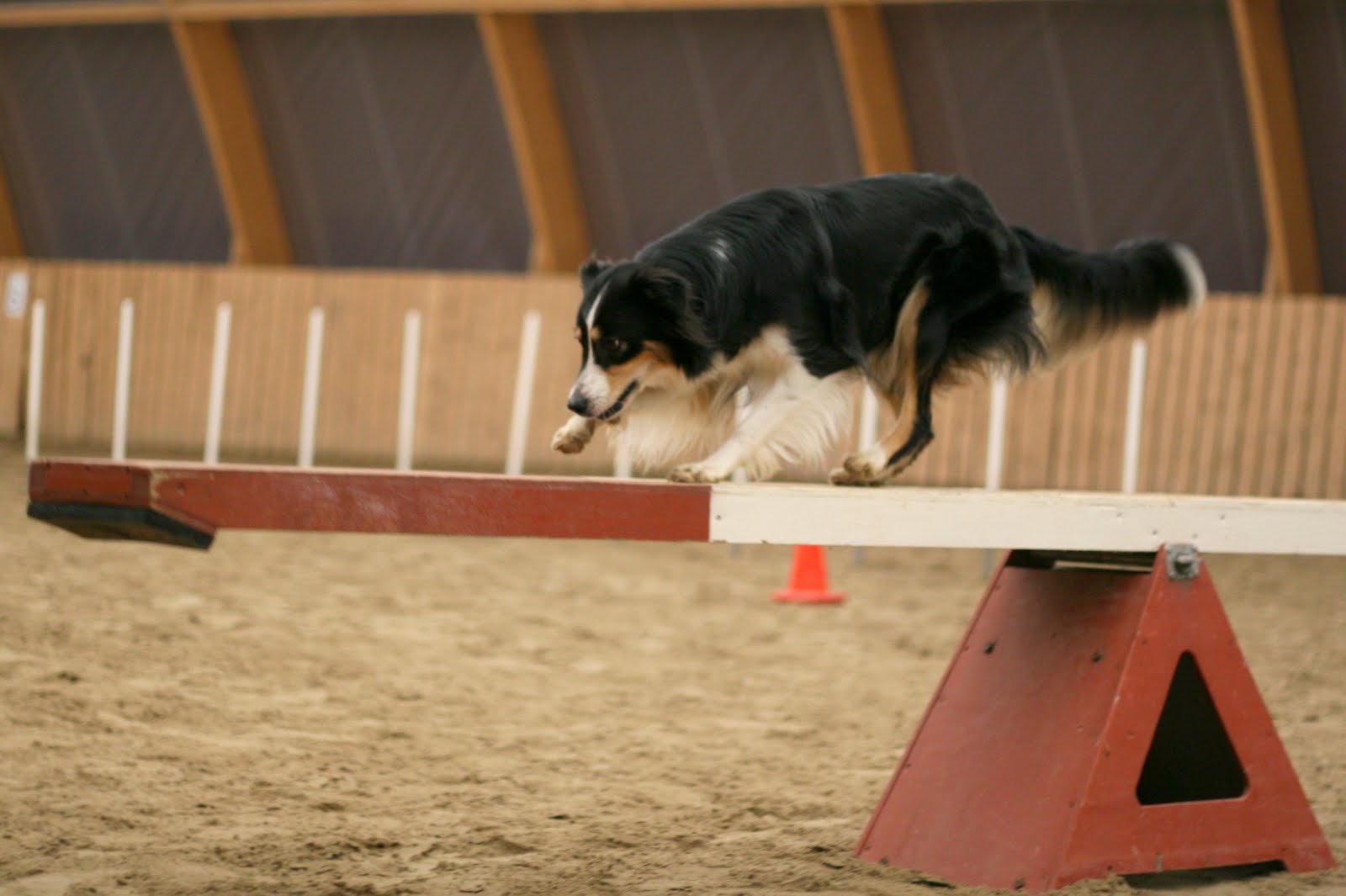 Vakkariaksassa tiistaina olikin melkoisen pitkä ja kimurantti rata. Lopulta kuitenkin pätkissä tehden homma alkoi toimia. Chila oli superhyvä ja innoissaan ja omakin ohjaus toimi kohtuullisesti. Putkikulmien kanssa ei ollut ongelmaa, se myös meni hienosti siihen putkeen mihin pitikin, vaikka tarjolla oli niitä enemmänkin vieri vieressä. Keinu siellä seassa meni hyvin ja kontaktikin löytyi, vaikka ensin jäi liian ylös. Osasin virittää koiran sopivasti aina välitaukojen jälkeen ja kepitkin Chila meni matalana ja lujaa. Hieno fiilis! Lopuksi tietysti heitin pallon maneesin reunan taakse (mun kuuluisa heittokäsi), joten loppujumppana sain kiipeillä korkean ja erittäin pölyisen reunan ja kuplahallin katon väliseen kapeaan tilaan. Pääsin sentään poiskin.